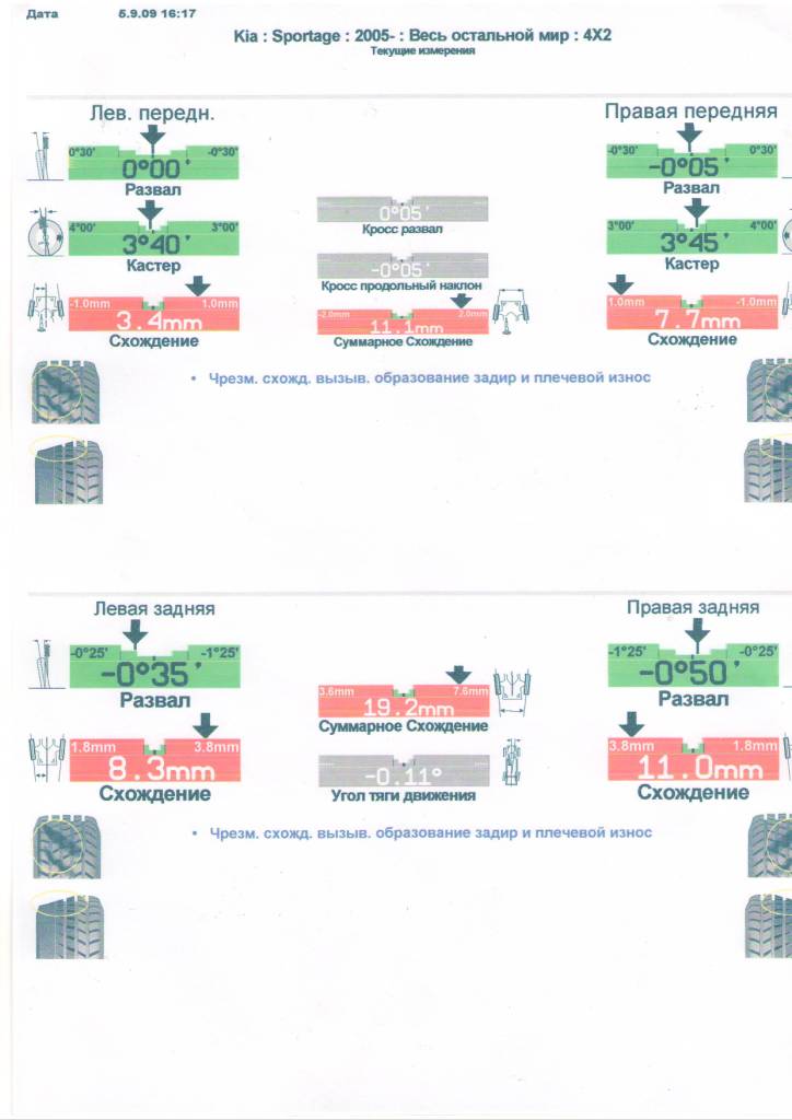 журнал "За рулем" №10-2009, Ответ дилера на претензию, Диагностика сход-развал у..., Сход-развал пробег 4200км, Колесо заднее 4200км, Колесо переднее пробег 42...