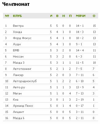 Таблица чемпионата